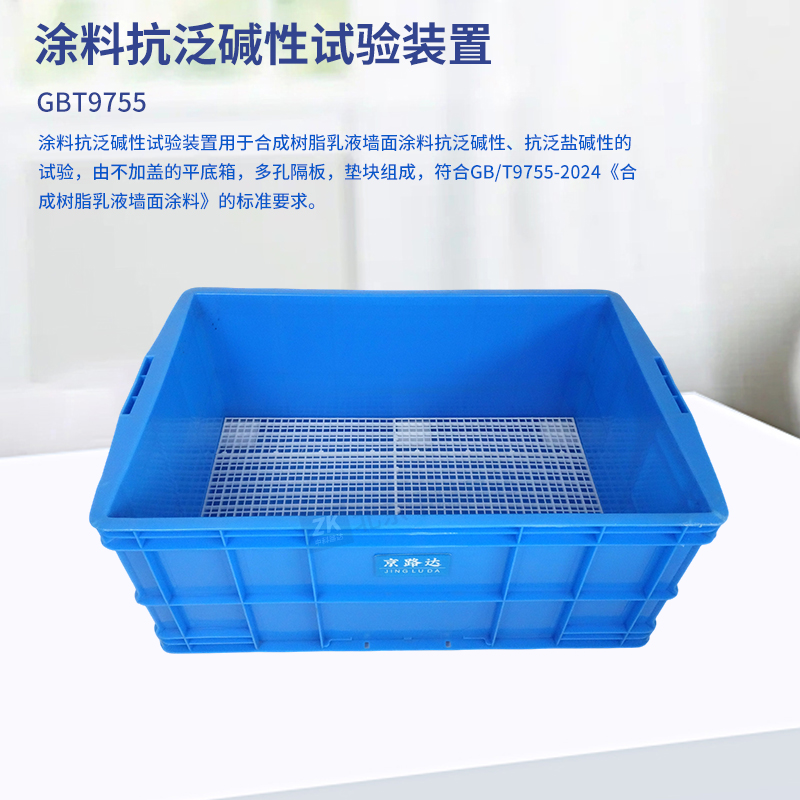 涂料抗泛堿性試驗裝置用于合成樹脂乳液墻面涂料抗泛堿性、抗泛鹽堿性的試驗,由不加蓋的平底箱,多孔隔板,墊塊組成,符合GB/T9755-2024《合成樹脂乳液墻面涂料》的標(biāo)準(zhǔn)要求。